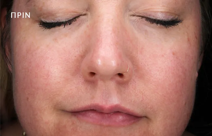 Σημείωση: Δερμοανάλυση VISIA – τυπική προβολή και προβολή ερυθρού καναλιού κάτω από την επιφάνεια του δέρματος. Τα μεμονωμένα αποτελέσματα ενδέχεται να διαφέρουν.