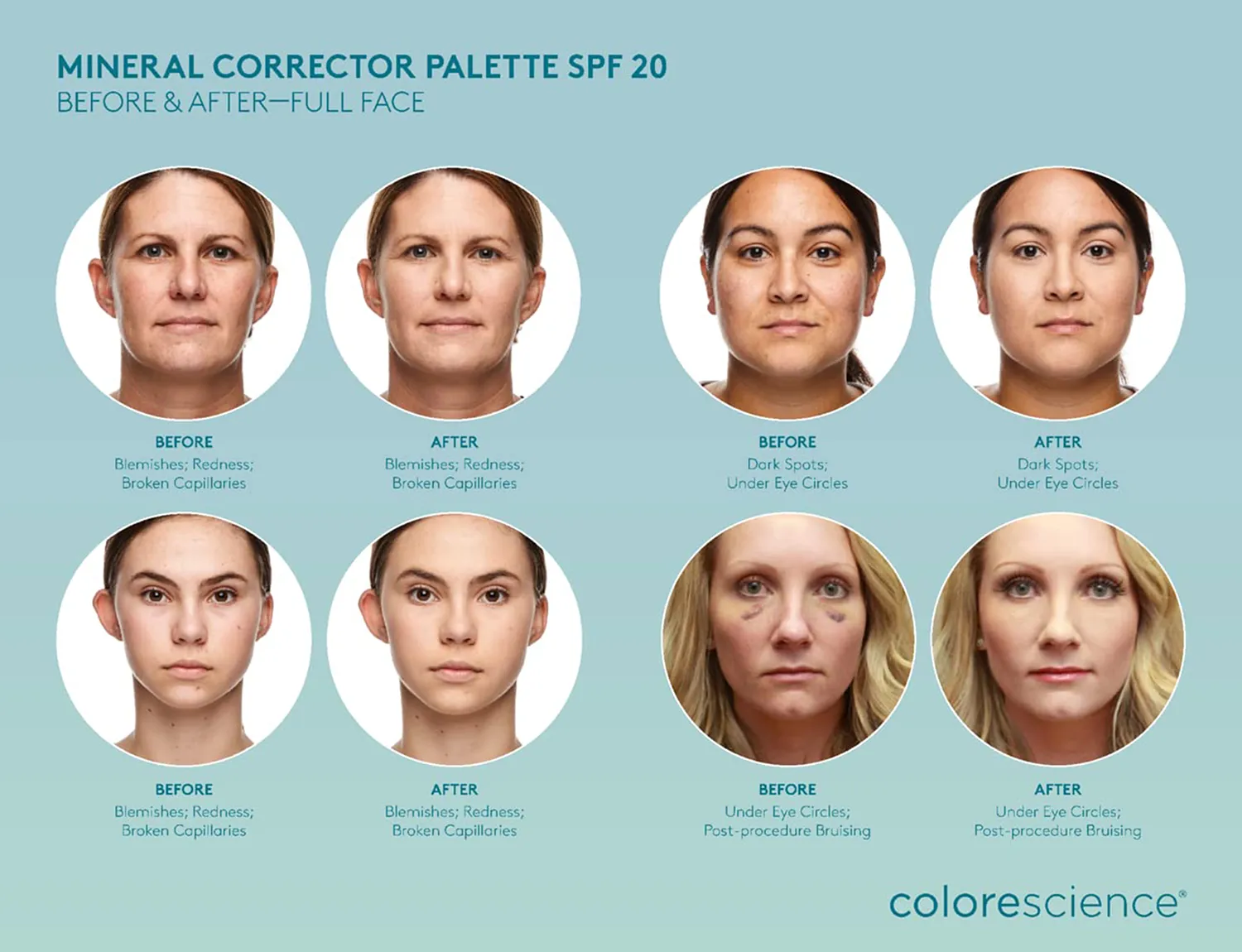 Ατέλειες; Κηλίδες; Δυσχρωμίες; Καλύψτε, προστατέψτε και φωτίστε τις με την παλέτα Colorescience® Mineral Corrector. Απαραίτητο για το καθημερινό μακιγιάζ, εξαφανίζει κάθε ατέλεια με πέντε αποχρώσεις και τη σιγουριά της προστασίας SPF 20.