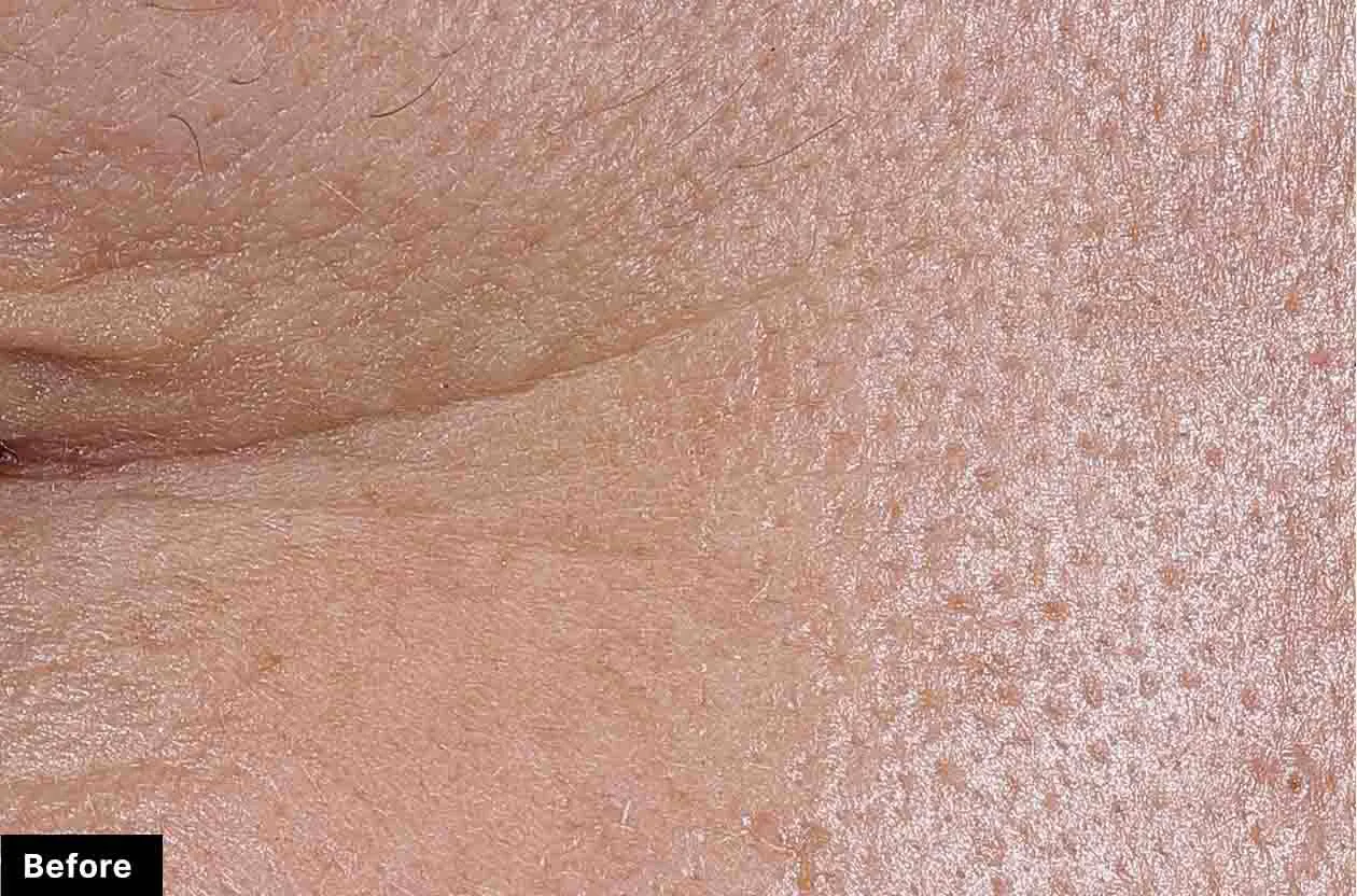 H υφή της επιδερμίδας είναι πιο λεία και πιο λαμπερή, και οι πόροι είναι λιγότερο ορατοί.